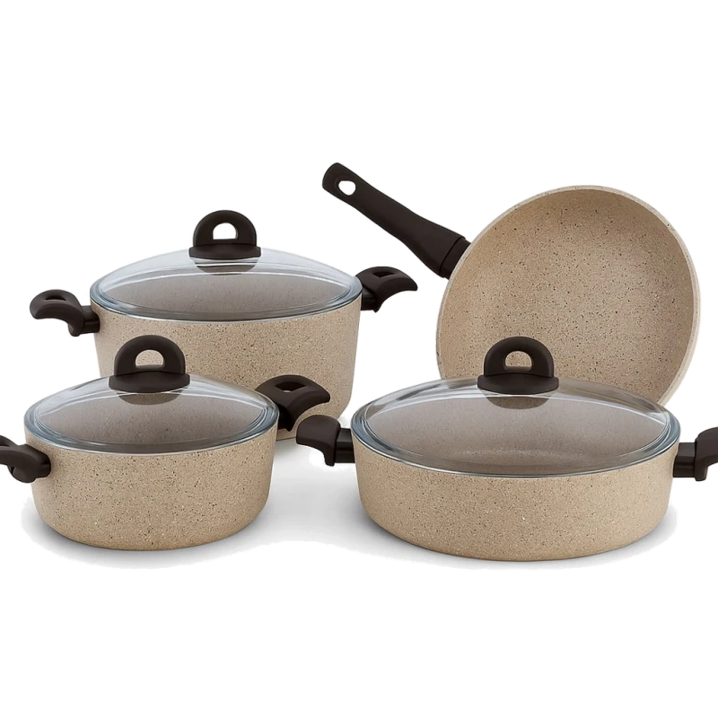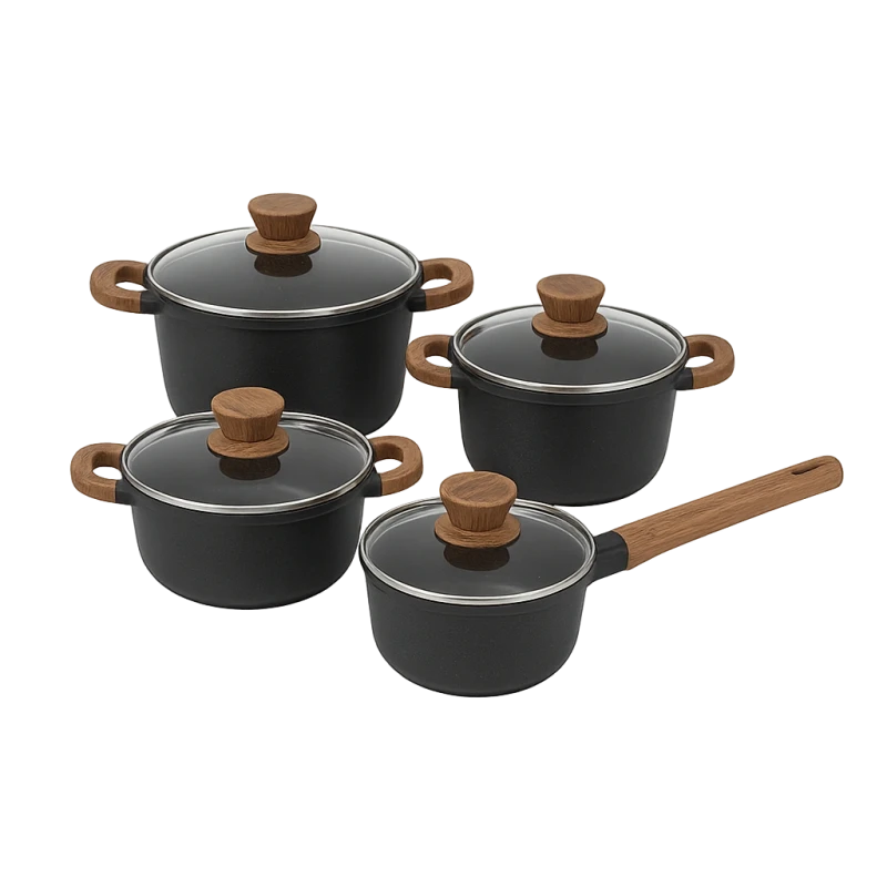 NERO GRANITE – GR-308 8 Parça Siyah Granit Tencere Seti